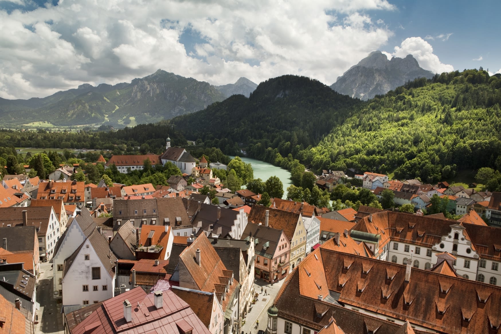 In southern Bavaria, Füssen is the cradle of lute making in Europe. One of its most famous landmarks is the late-gothic Hohes Schloss castle, and it is the site of Neuschwanstein castle, a refuge for Germany's late King Ludwig II of Bavaria.